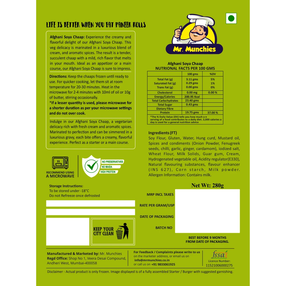 Delight in the robust flavors of our Lasooni Soya Chaap. This veg treat is marinated in a tantalizing mixture of garlic, yogurt, and spices.