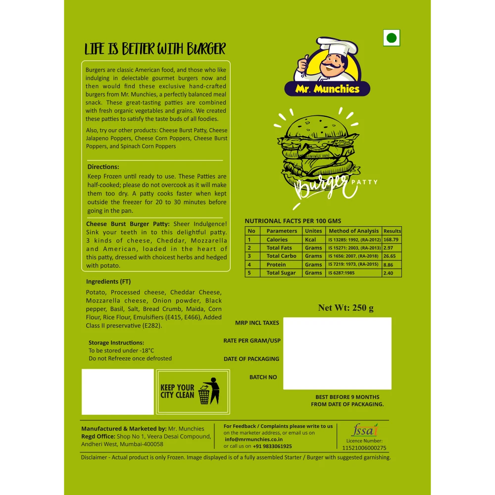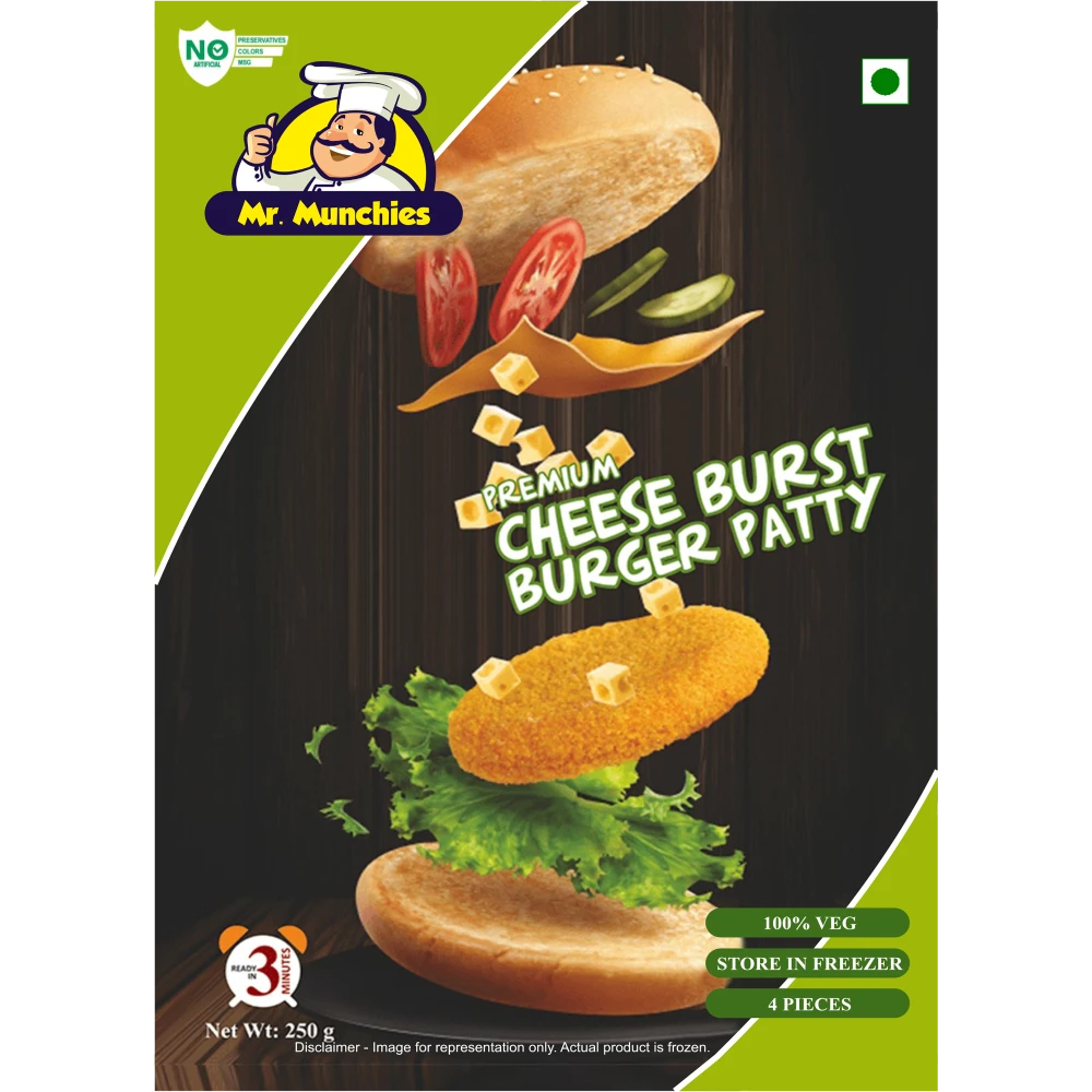 Sheer Indulgence! Sink your teeth into these 3 kinds of cheese, Cheddar, Mozzarella, and Melto burger patty.