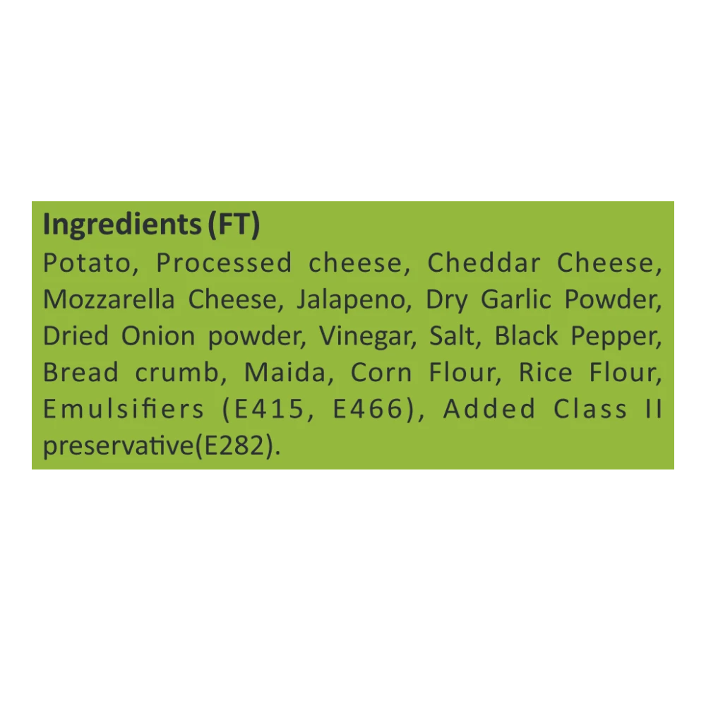 Cheddar, Mozzarella, and American melto, cheese-loaded in the middle of these pop shots with Jalapeno.
