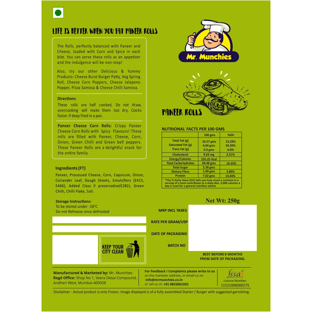 Crispy paneer cheese corn rolls with spicy flavors! These Rolls are filled with paneer, cheese corn, onion, green chili, and green bell peppers. These Paneer rolls are a delightful snack for the entire family.