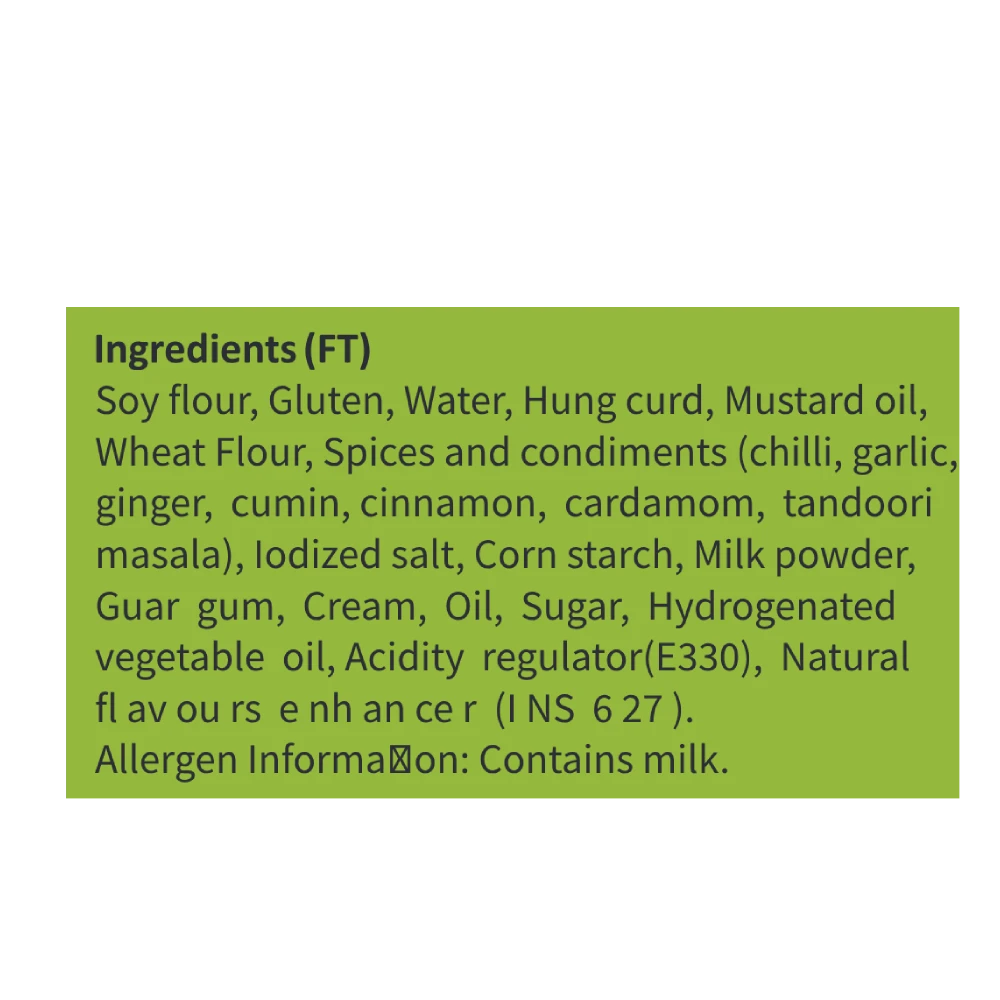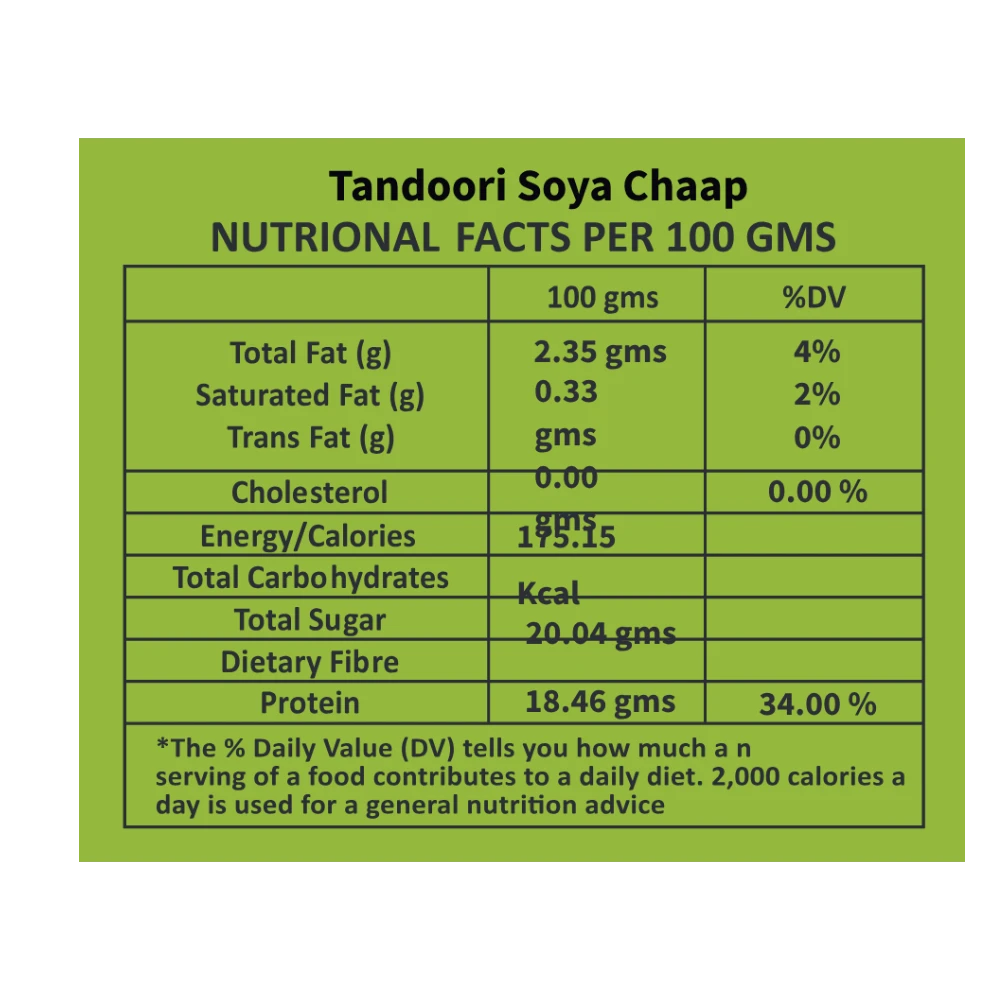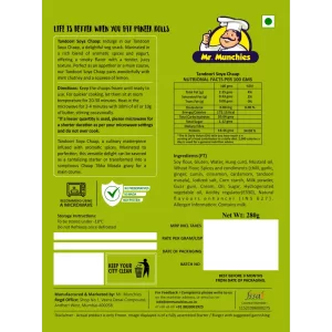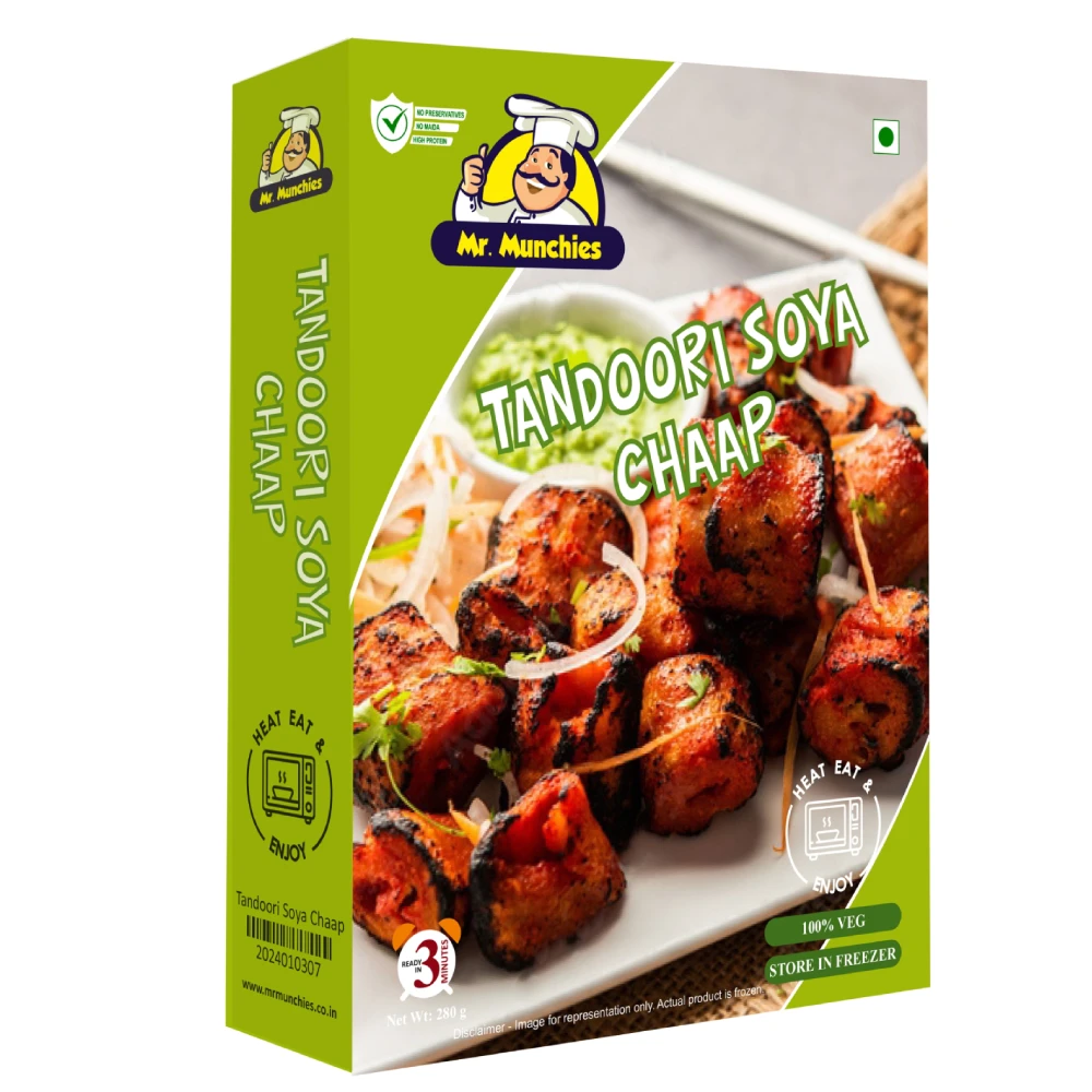 Indulge in our Tandoori Soya Chaap, a delightful veg snack. Marinated in a rich blend of aromatic spices and yogurt, offering a smoky flavor with a tender, juicy texture.